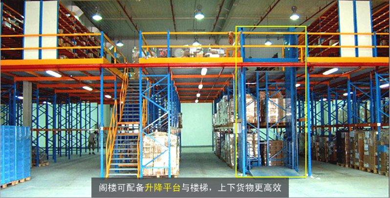 7、通常配设楼梯、液压升降台或电梯,或由叉车将货物运至楼上;