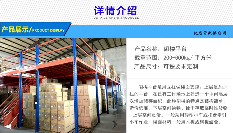 阁楼式货架是在厂房地板面积有限的情形下,利用钢梁和金属板将原有储区作楼层区分,每个楼层可放置不同的种类的货架,而货架结构具有支撑上层楼板的作用。阁楼式货架在仓储设备中占有着十分重要的地位,阁楼式货架的应用实现了仓库管理的现代化进程,全面提升仓库的功能。