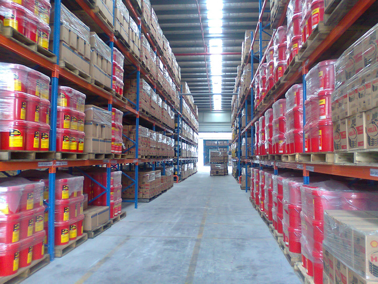 重型横梁式货架是目前使用应用广泛的货架类型之一,具有较强的通用性,可适应各种类型的货物,可按货物尺寸要求调解横梁高度。重型横梁式货架主要由立柱、横梁、横撑、斜撑以及自锁螺栓组装而成。横梁与立柱的连接多采用机械式的锁扣结构,可随意拆装组合。横梁采用特制的冷轧P型闭口梁;该结构具有简单可靠、重量轻、承载力强、造价低的特点;柱卡与立柱连接时配有特殊设计安全销,可以确保横梁在外力撞击下不会脱落。可根据存储单元集装设备的特性加装如:隔档、钢层板(木层板)、金属丝网层、仓储笼导轨、油桶架等功能性附件。根据用户实际使用情况:托盘载重要求、托盘尺寸、仓库实际空间、叉车实际提升高度,可提供不同规格的横梁式重型货架以供客户选择。